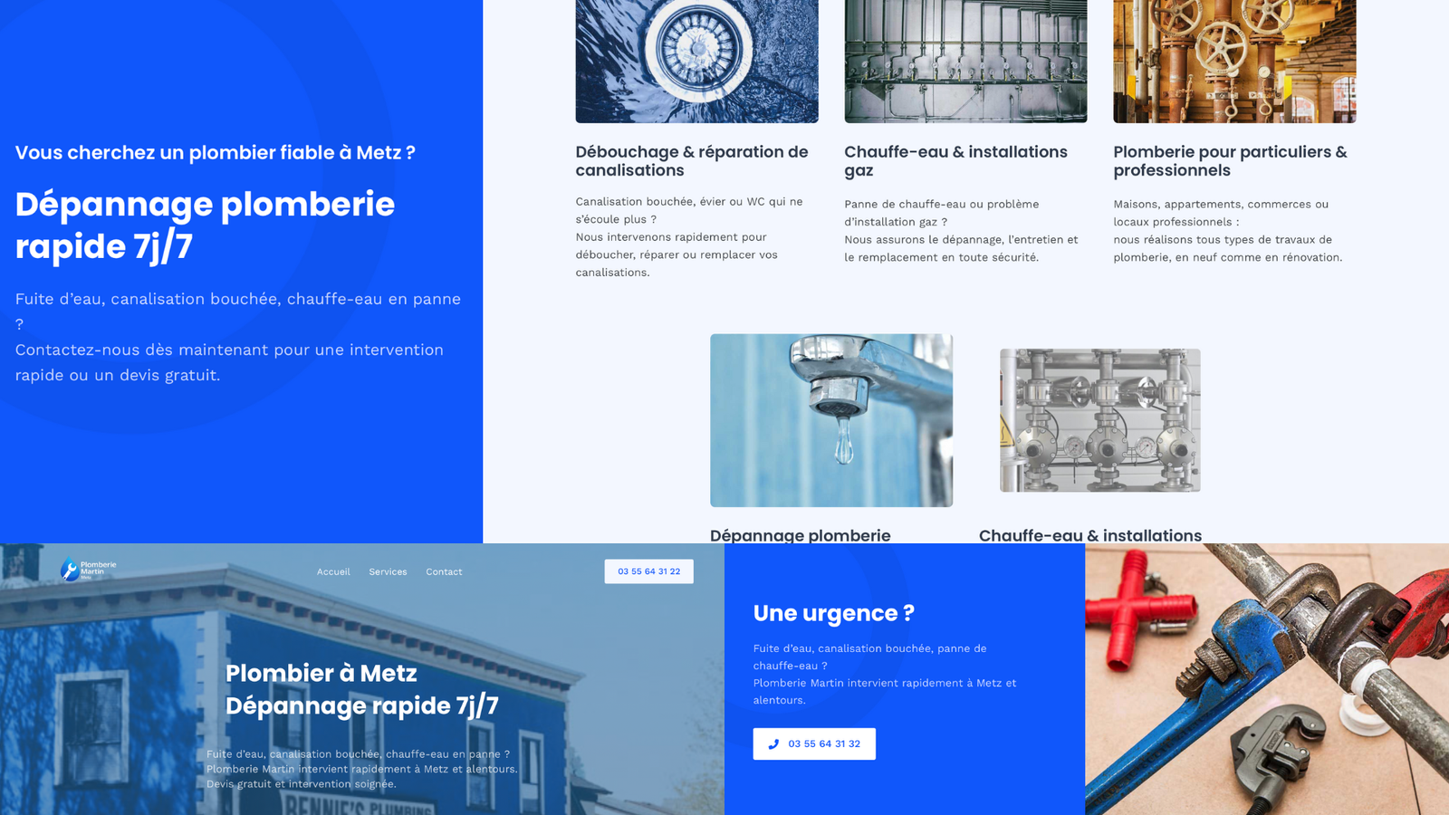 Le site est optimisé pour le référencement local afin d’apparaître sur Google lorsqu’un client recherche un plombier à proximité.